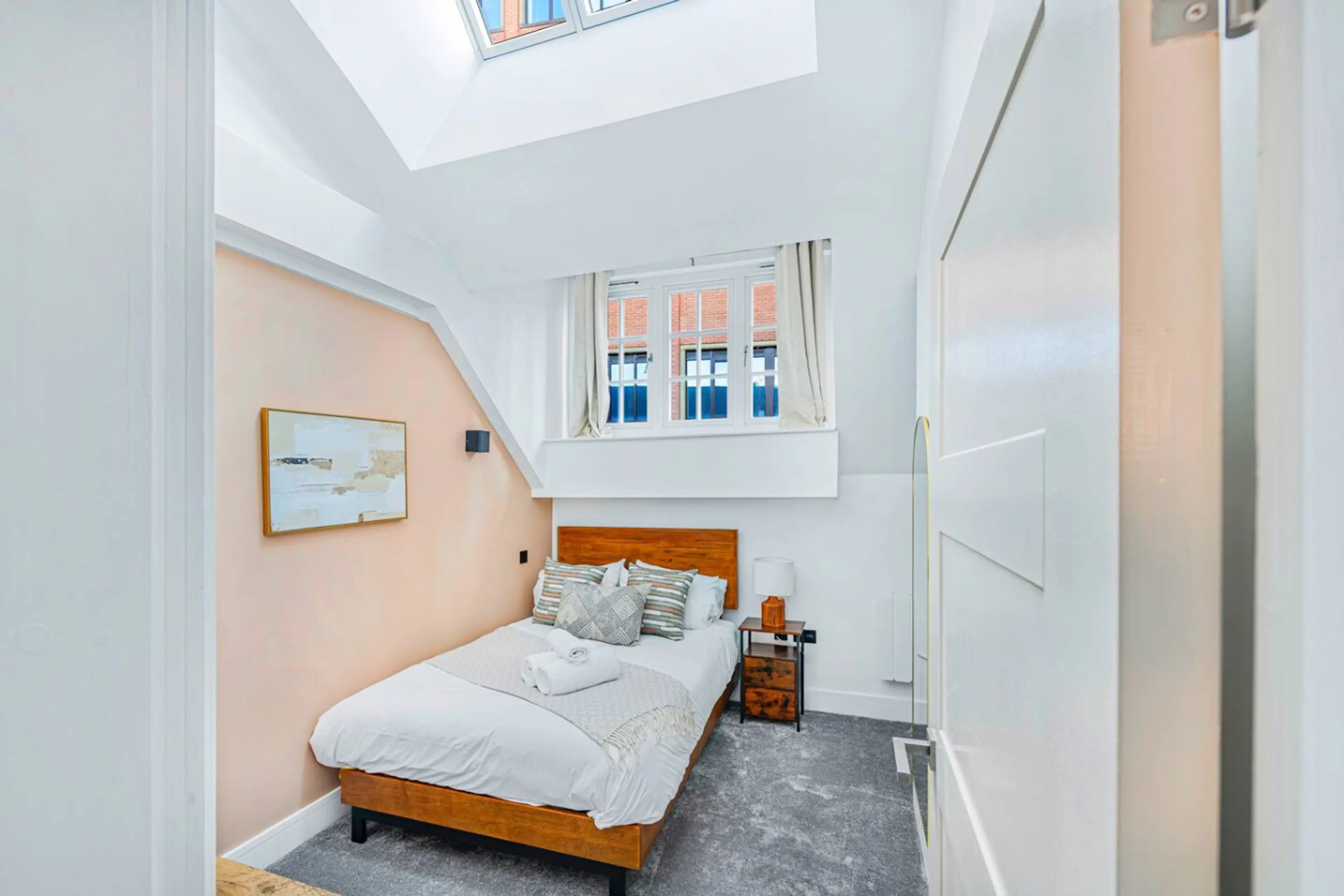 Stay in a beautifully styled 2-bedroom, 2-bathroom apartment in The Picturehouse, located directly in Nottingham’s main square. With a bright open-plan living space, fully equipped kitchen, and an ensuite master bedroom, this is the ideal base for couples, small groups or working professionals. ...